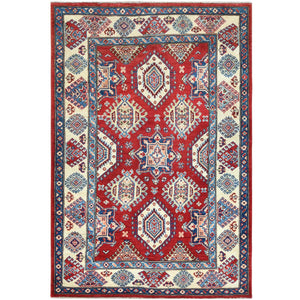 4'x5'9" Red Caucasian Design Special Kazak Hand Knotted Natural Wool Oriental Rug FWR364446