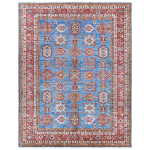 9'2"x11'10" Denim Blue Caucasian Design Super Kazak Soft Organic Wool Hand Knotted Oriental Rug FWR366882