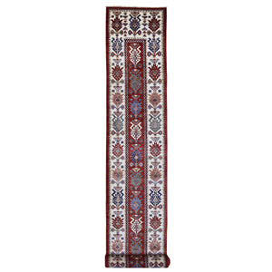 3'x25'3" Soft, Vibrant Wool Rich Red Hand Knotted Super Kazak With Tribal Flower Design Oriental Extra Long And Wide Runner Rug FWR411870