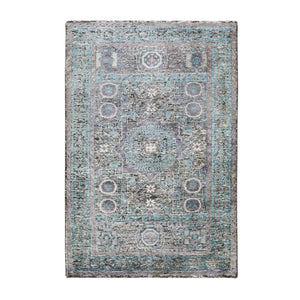 3'1"x5' Silk With Textured Wool Hi-low Pile Mamluk Design Runner Hand Knotted Oriental Rug FWR349170