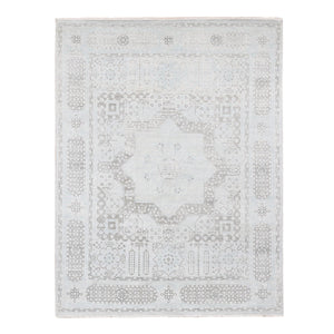 8'1"x10'5" Light Blue, Hand-knotted, Mamluk Design, Pure Silk With Textured Wool, Oriental Rug FWR482346