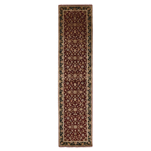 2'6"x8'2" Heritage Red, Thick And Plush, Wool And Silk Soft Pile, Hand Knotted, Rajasthan, All Over Design, Oriental, Runner Rug FWR452358