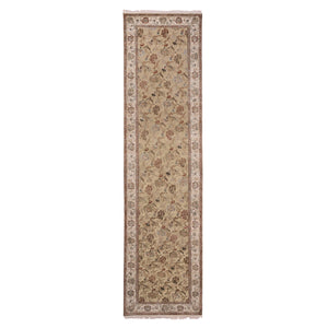 2'6"x10'1" Amphora Brown And Daisy White, Rajasthan Wool And Silk Leaf Design, Thick And Plush, Hand Knotted Runner Oriental Rug FWR452352