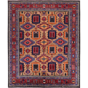 8'1"x9'7" Beige, Afghan Ersari With Turkish Knot, Caucasian Design Revival, Vegetable Dyes, Hand Knotted, Soft And Vibrant Wool, Densely Woven, Oriental Rug FWR3324