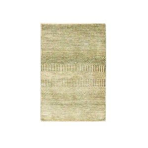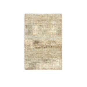 2'x3' Beige, Hand Knotted, Modern Grass Design, Lush And Plush, Wool With Touch Of Silk, Sample, Tone On Tone, Mat, Oriental Rug FWR459138