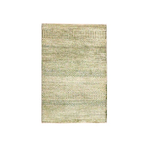 2'x3' Beige, Modern Grass Design, Hand Knotted, Tone On Tone, Wool With Touch Of Silk, Lush And Plush, Mat, Sample, Oriental Rug FWR458694