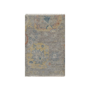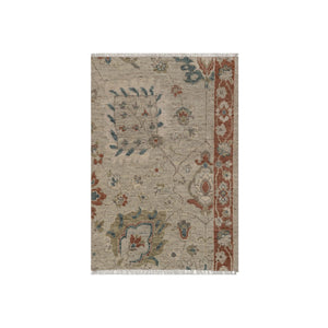 2'x3'1" Beige, Broken Pattern With Oushak Design, Borderless, 100% Wool, Hand Knotted, Mat, Sample, Oriental Rug FWR548778