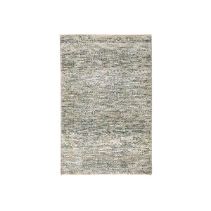 2'x3' Beige-gray, Modern Grass Design, Hand Knotted, Tone On Tone, Wool With Touch Of Silk, Lush And Plush, Mat, Sample, Oriental Rug FWR459948