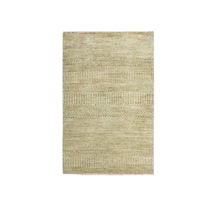 2'x3' Beige, Modern Grass Design, Tone On Tone, Hand Knotted, Undyed Natural Wool, Mat, Sample, Oriental Rug FWR459486