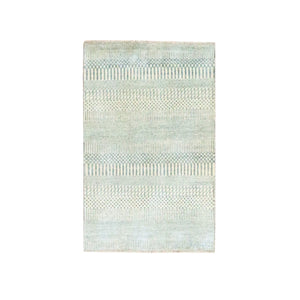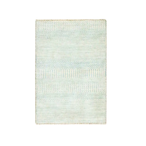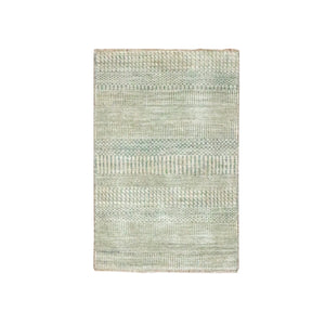 2'x3' Beige-gray, Hand Knotted, Modern Grass Design, Wool With Touch Of Silk, Tone On Tone, Lush And Plush, Mat, Sample, Oriental Rug FWR459876