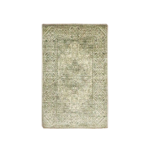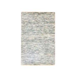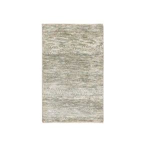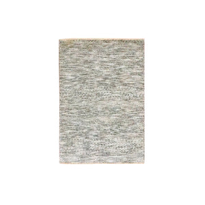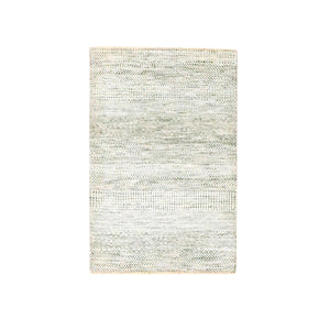 2'x3' Beige-gray, Modern Grass Design, Tone On Tone, Hand Knotted, Undyed Natural Wool, Mat, Sample, Oriental Rug FWR459564