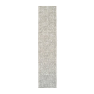 2'7"x12' Beige Wool And Plant Based Silk Hand Loomed Fine Jacquard With Erased Design Oriental Runner Rug FWR379668