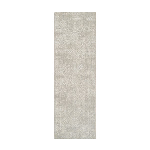 2'6"x8' Beige Wool And Plant Based Silk Hand Loomed Fine Jacquard With Erased Design Oriental Runner Rug FWR379680