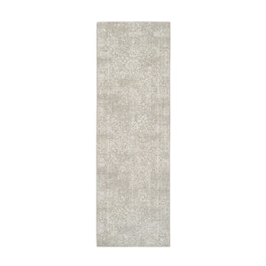 2'5"x6' Beige Wool And Plant Based Silk Hand Loomed Fine Jacquard With Erased Design Oriental Runner Rug FWR379698