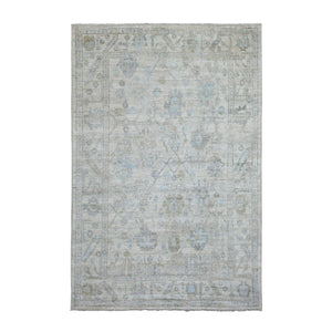 6'x9'1" Hand Knotted Beige Angora Oushak With Soft Colors Afghan Wool Oriental Rug FWR418104