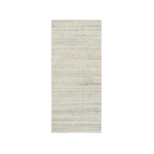 2'6"x7'10" Beige, Hand Loomed, Variegated Textured Modern Design Natural Wool, Runner Oriental Rug FWR388956