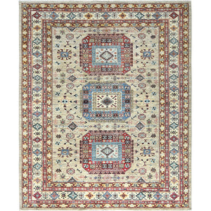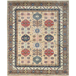 8'x9'6" Cream, Afghan Super Kazak With Large Medallions, Vegetable Dyes Dense Weave, Extra Soft Wool Hand Knotted, Oriental Rug FWR493938