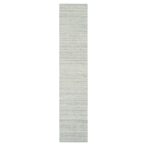 2'5"x12' Beige, Variegated Textured Modern Design, Hand Loomed Natural Wool, Runner Oriental Rug FWR390246