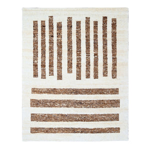 9'1"x12'1" Taupe And Black, Wool And Plant Based Silk, Hand Loomed, Modern Textured And Variegated Line Design, Oriental Rug FWR506082