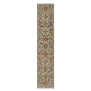 2'6"x11'10" Desert Sand Brown, The Sunset Rosettes With Soft Colors, Hand Knotted, Wool And Pure Silk, Runner, Oriental Rug FWR547722