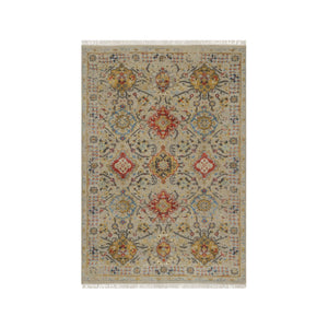 4'1"x6' Khaki Brown, Soft To The Touch Pile, The Sunset Rosettes, Hand Knotted, Wool And Pure Silk, Oriental Rug FWR547728