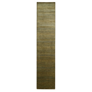 2'8"x12'2" Golden Brown, Wool And Silk, Modern Grass Design, Hand Knotted, Denser Weave, Soft To The Touch, Runner, Oriental Rug FWR499332