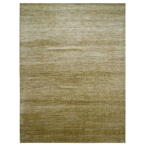 4'x8' Ecru Olive Brown, Modern Grass Design, Hand Knotted, Denser Weave, Wool And Silk, Lush And Plush, Wide Runner, Oriental Rug FWR499308
