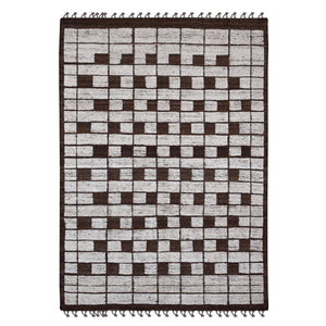 6'4"x9' Chocolate Brown, Moroccan Weave With Checkerboard Design, Soft Wool, Tone On Tone, Hand Knotted, Textured Pile, Oriental Rug FWR122526
