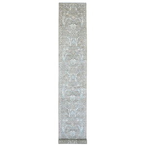 2'8"x19'4" Mocha Brown, Stone Washed Peshawar With Geometric Leaf Pattern, Hand Knotted, Vegetable Dyes, 100% Wool, Xl Runner, Oriental Rug FWR125580