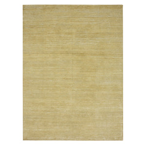 9'x12'3" Khaki Brown, Plain Solid Design, Silk With Textured Wool, Hand Knotted, Oriental Rug FWR454026