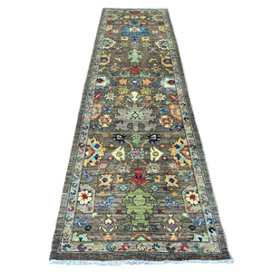 3'2"x11'8" Cedar Brown, Aryana Grade, Afghan Peshawar With Heriz All Over Design, High Mountain Wool, Hand Knotted, Runner, Oriental Rug FWR538902