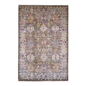 4'1"x9'8" Beaver Brown, Aryana Collection, Willow And Cypress Tree Design, Vegetable Dyes, Wide Runner, Oriental Rug FWR124926