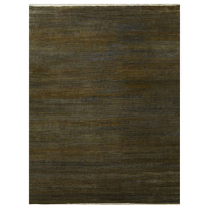 10'x14' Khaki Brown, Modern Grass Design, Hand Knotted, Borderless, Denser Weave, Lush And Plush, Tone On Tone, Wool And Silk, Oriental Rug FWR457992
