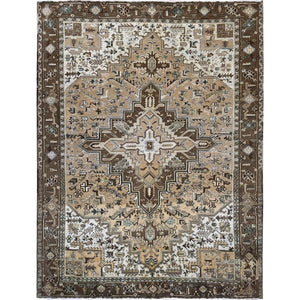 7'9"x10'3" Dark Vanilla Brown, Vintage Persian Heriz With Geometric Medallion Design, Pure Wool, Hand Knotted, Evenly Worn, Cropped Thin, Good Condition, Sides And Ends Professionally Secured, Oriental Rug FWR7536