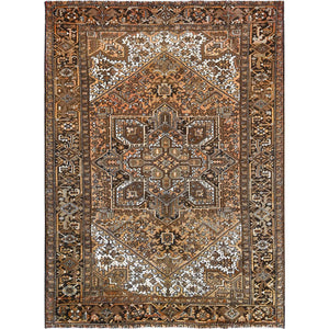 7'6"x10'2" Tawny Brown, Vintage Persian Heriz With Geometric Medallion Design, Pure Wool, Hand Knotted, Evenly Worn, Shaved Down, Good Condition, Sides And Ends Professionally Secured, Oriental Rug FWR7548