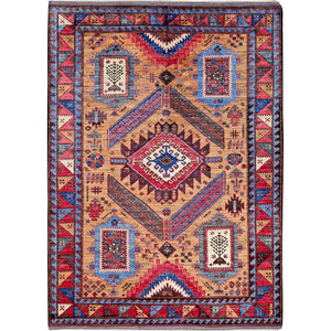 6'1"x8'4" Ochre Brown, Afghan Ersari With Turkish Knot, Caucasian Design Revival, Densely Woven, Vegetable Dyes, Hand Knotted, 100% Wool, Oriental Rug FWR3372
