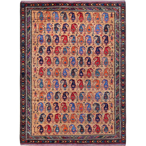 6'x8'6" Tawny Brown, Afghan Ersari With Turkish Knot, Caucasian Design Revival, Ancient Bird Figurines, Vegetable Dyes, Hand Knotted, 100% Wool, Oriental Rug FWR3474