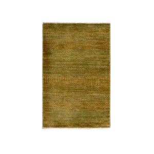 2'x3' Golden Brown, Modern Grass Design, Hand Knotted, Wool With Touch Of Silk, Lush And Plush, Sample, Tone On Tone, Mat, Oriental Rug FWR459060
