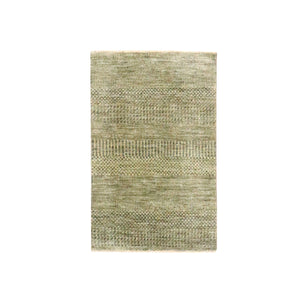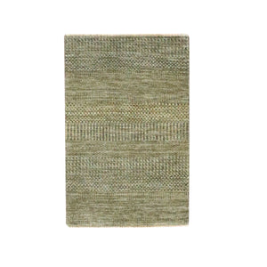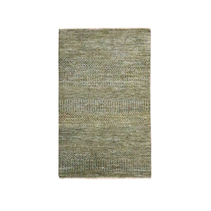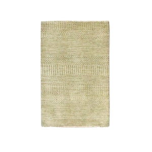 2'x3' Ecru Brown, Modern Grass Design, Hand Knotted, Wool With Touch Of Silk, Tone On Tone, Lush And Plush, Mat, Sample, Oriental Rug FWR459624