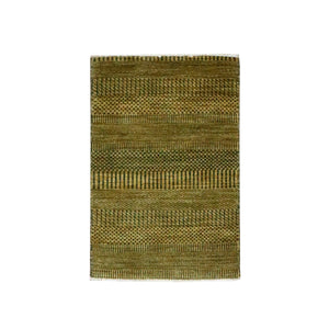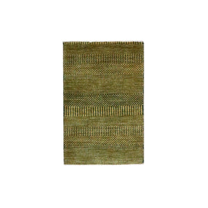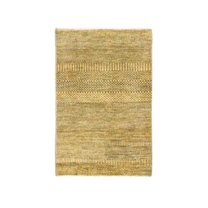 2'x3' Golden Brown, Modern Grass Design, Hand Knotted, Wool With Touch Of Silk, Tone On Tone, Lush And Plush, Sample, Mat, Oriental Rug FWR459726