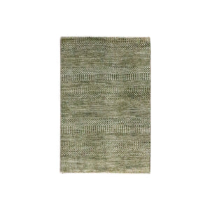 2'x3' Ecru Brown, Lush And Plush, Hand Knotted, Modern Grass Design, Wool With Touch Of Silk, Tone On Tone, Mat, Oriental Rug FWR459108