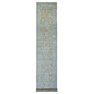 2'7"x15' Tan Color, Soft Wool Hand Knotted, Afghan Angora Oushak With Soft Colors Natural Dyes, Runner Oriental Rug FWR443196