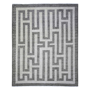 10'x14' Taupe And Black, Modern Textured And Variegated Line Design, Wool And Plant Based Silk, Hand Loomed, Oriental Rug FWR505176