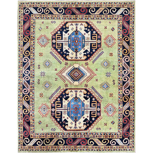 8'x10'4" Laurel Green, Afghan Special Kazak With Geometric Medallions Design, Hand Knotted, Densely Woven, 100% Wool, Vegetable Dyes, Oriental Rug FWR1806