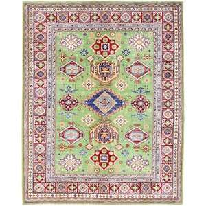 5'4"x6'8" Kelly Green, Kazak With Geometric Medallions Design, Hand Knotted, Natural Dyes, Denser Weave, 100% Wool, Oriental Rug FWR1962