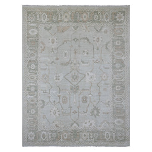 8'7"x12' Silt Green, Oushak Without A Border, All Over Leaf Pattern, Hand Knotted, 100% Wool, Oriental Rug FWR550854