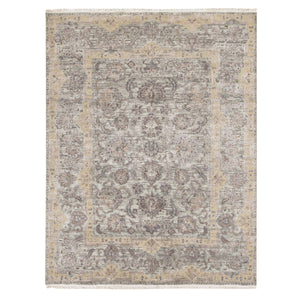 8'x10' Sea Foam Green, Wool And Silk Hand Knotted, Broken Persian Design, Oriental Rug FWR484734