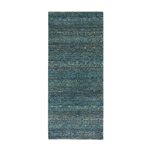 2'6"x8' Cerulean Forest Green, Diamond Shape Repetitive Design, Kohinoor Herat, Soft To The Touch All Wool, Hand Knotted, Runner Oriental Rug FWR478014