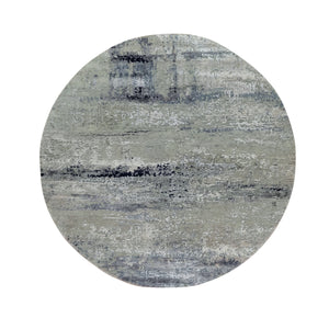 6'x6' Silver Blue Wool & Silk Modern Abstract Design Hand Knotted Oriental Round Rug FWR353298