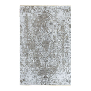 6'x9' Grey Broken Persian Design Wool And Pure Silk Hand Knotted Oriental Rug FWR372342